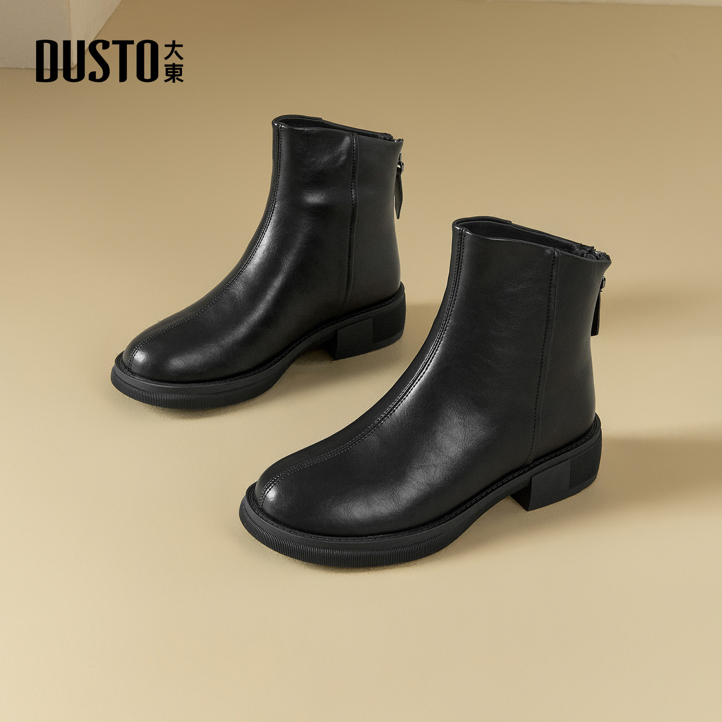 大东黑色加绒短靴女2025新款秋季切尔西短靴女士皮靴马丁靴瘦瘦靴
