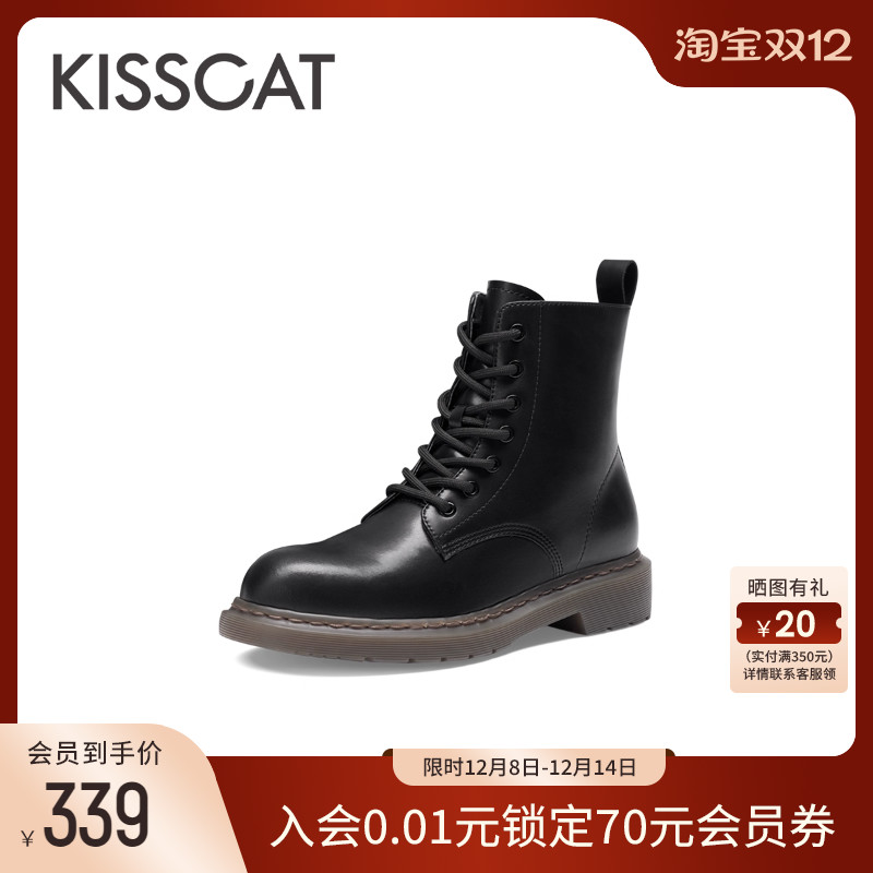 【舒心】KISSCAT接吻猫冬季经典户外马丁靴女真皮短靴女士时装靴
