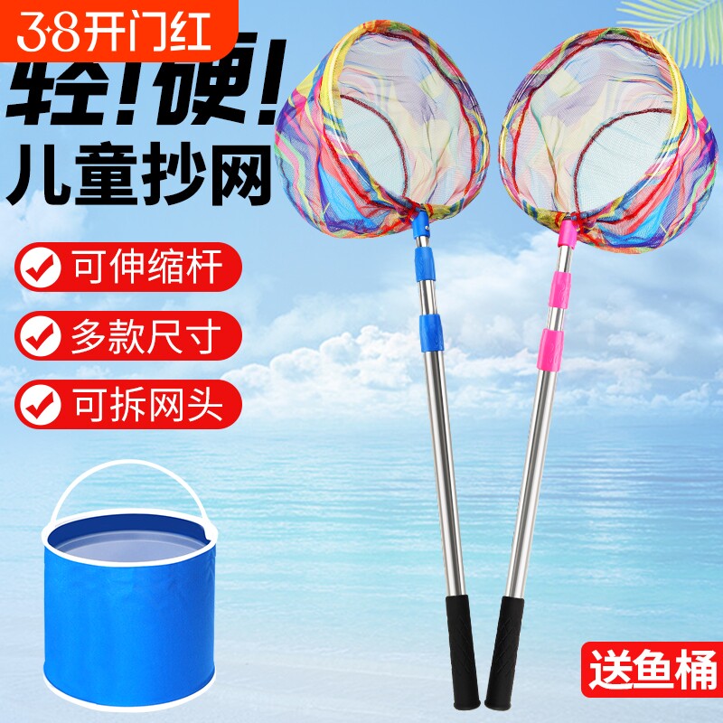 儿童抄网超硬伸缩捞鱼网抄网杆小孩捞鱼小鱼小虾加厚钓鱼全套网兜