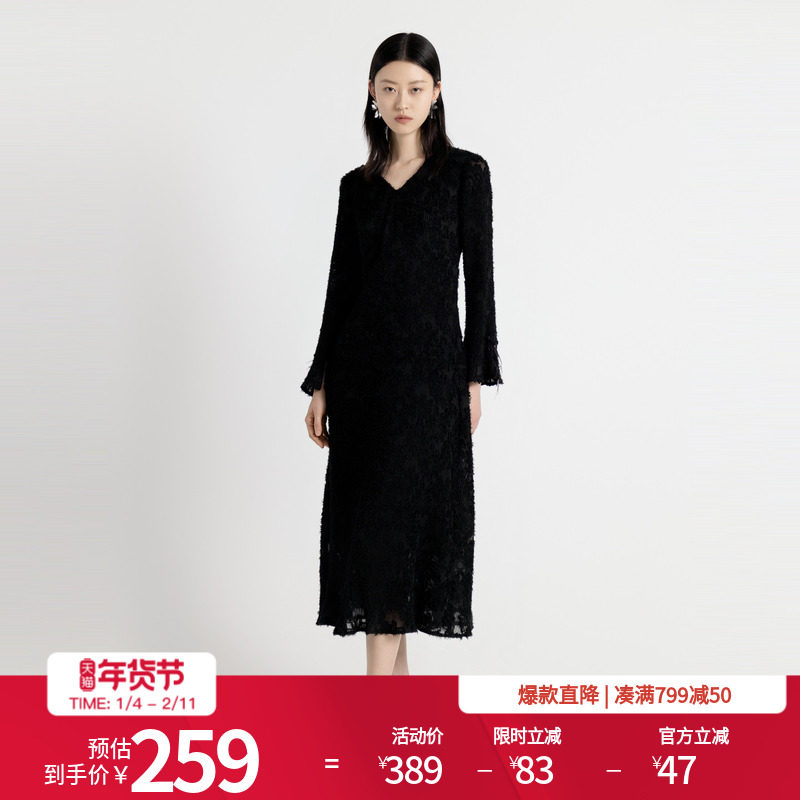 婉甸2025年秋季新品名媛千金风收腰镂空V领长袖连衣裙1243N08RJ3