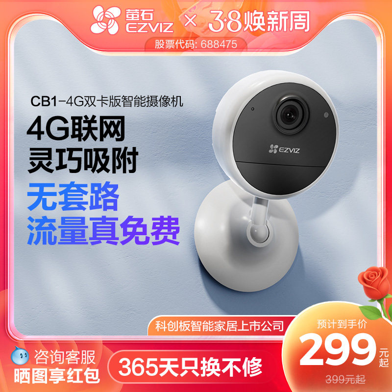 萤石CB1电池4G智能AI摄像头家用免插电手机无线网络远程监控家门