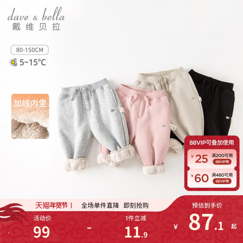戴维贝拉儿童裤子2026新款男宝宝加绒裤子冬装儿童休闲裤女童长裤