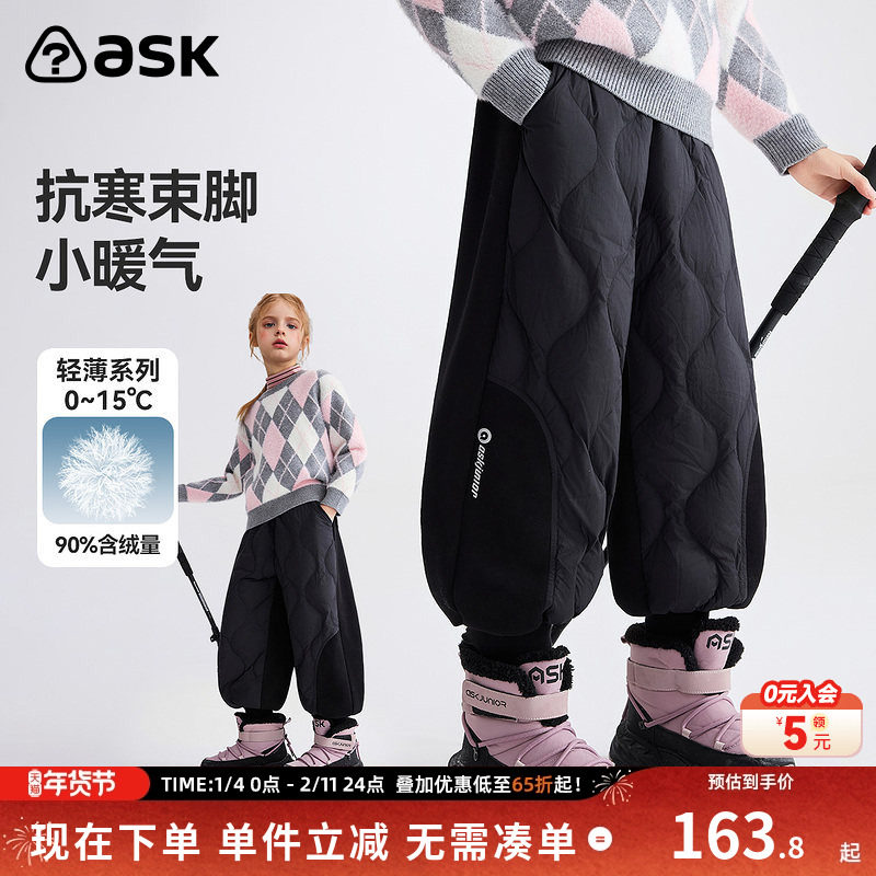ask儿童裤子2026春季新款中大童抗寒束脚羽绒裤女童保暖裤