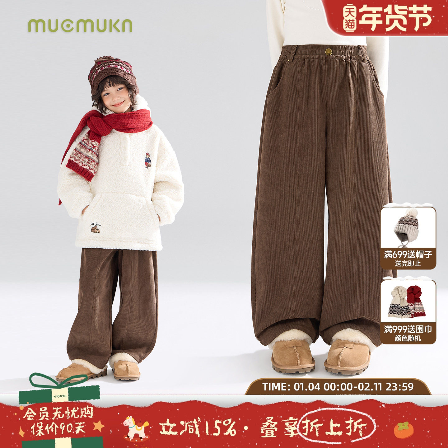 MUCMUKN【榛果暖冬】复古灯芯绒弯刀裤加绒保暖长裤女童冬季新款
