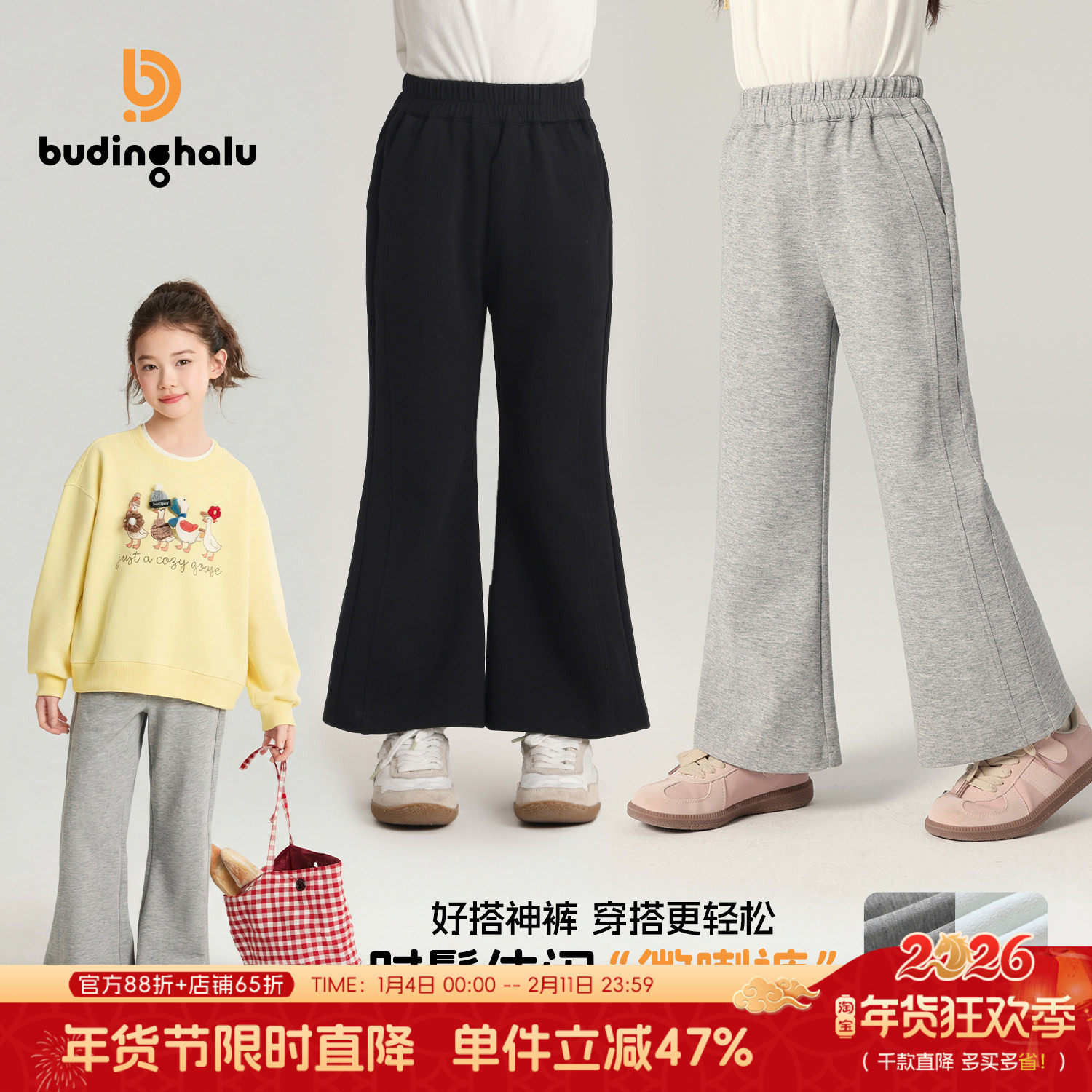 布丁哈鲁童装25新款加绒加厚微喇卫裤女童休闲秋冬休闲裤保暖长裤
