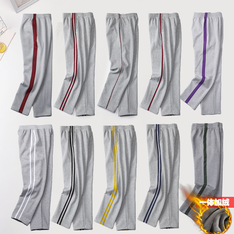 小学生校服裤加绒灰色黄杠枣红深蓝紫色杠儿童运动裤女童男童校裤