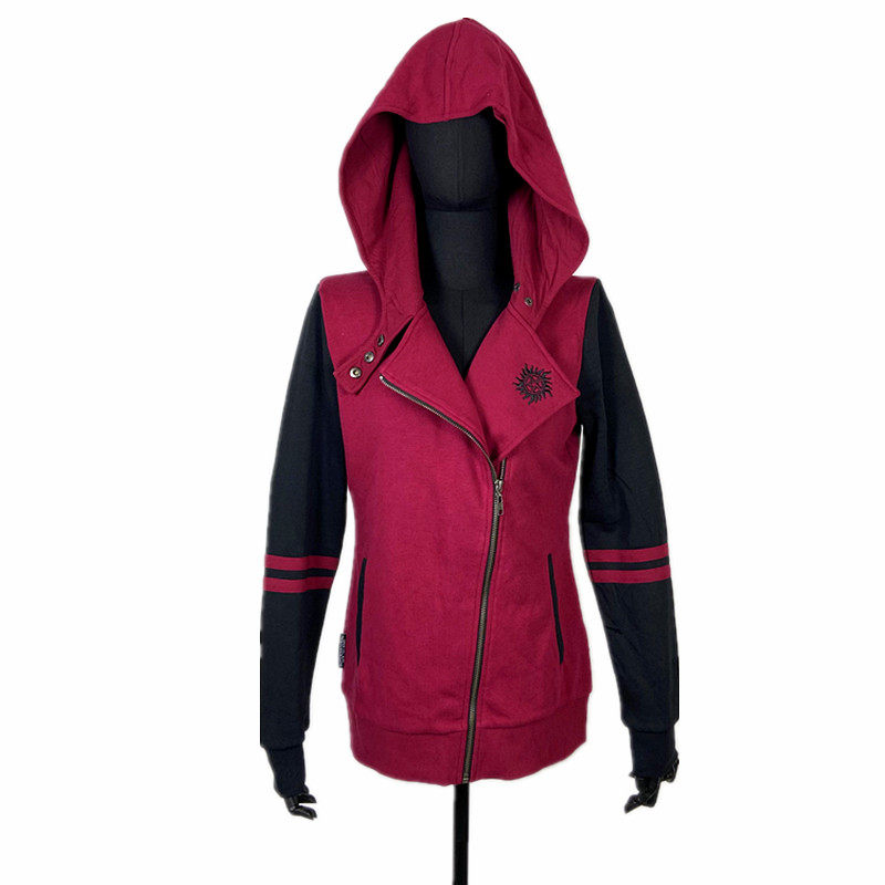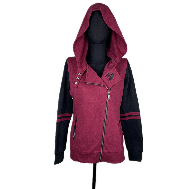 包邮摇滚暗黑五芒星神秘力量哥特朋克拉绒连帽卫衣撞色拼接女外套