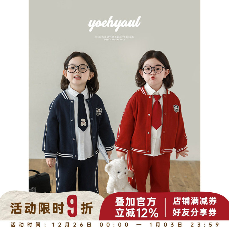 幼悠女童学院风套装2025春秋撞色嵌条休闲外套五芒星刺绣运动裤潮