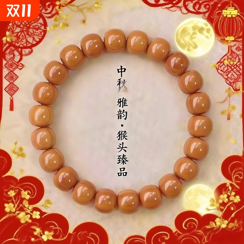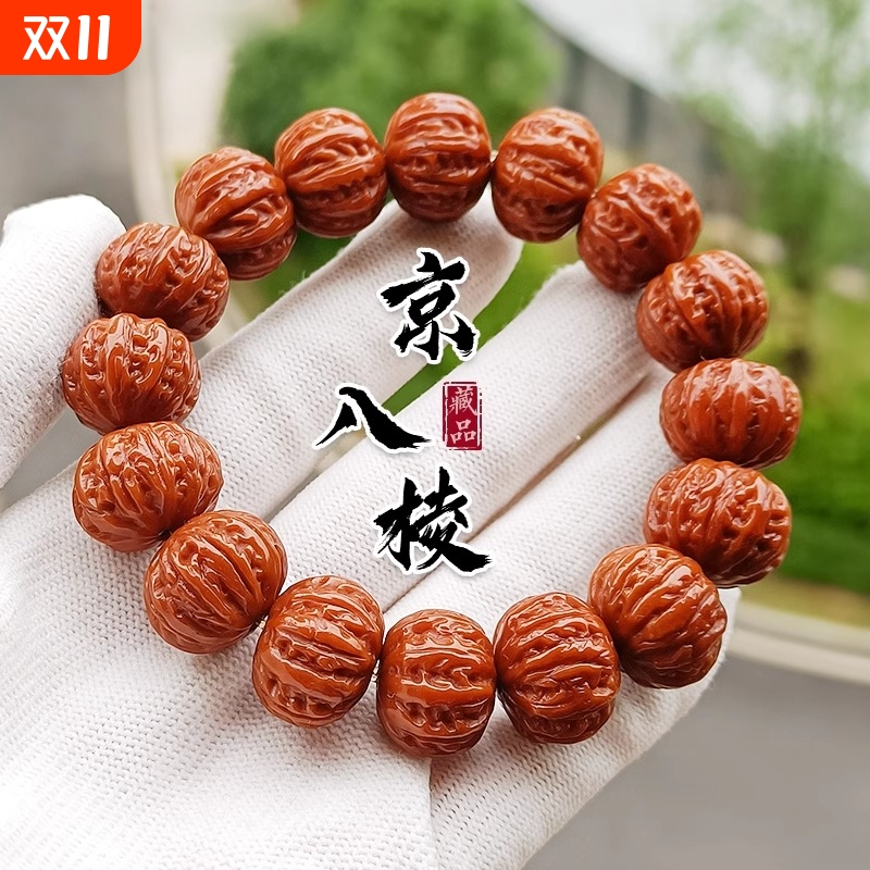 野生猴头手串男款雕刻粗筋京八棱手串矮桩正圆核桃文玩单圈佛珠女