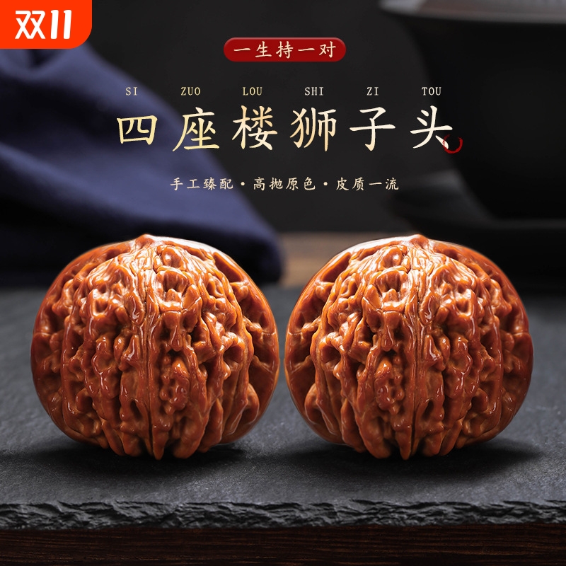 文玩核桃四座楼狮子头手把件机刷包浆官帽盘玩男士手玩麻核桃古玩