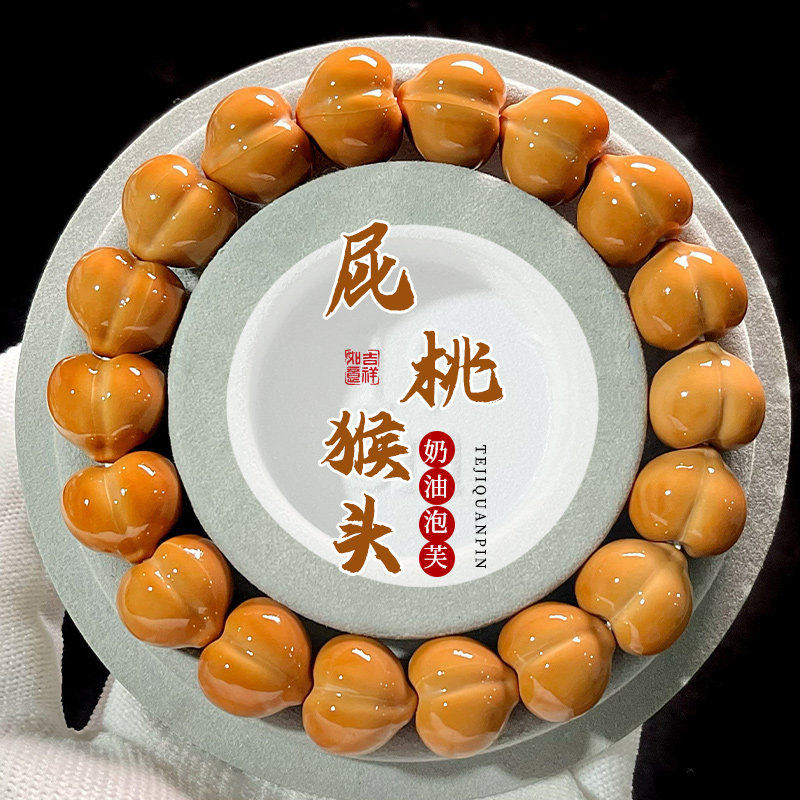 刘于宁同款天然龙炎奶酪无相猴头手串雕刻核桃文玩男女款佛珠菩提