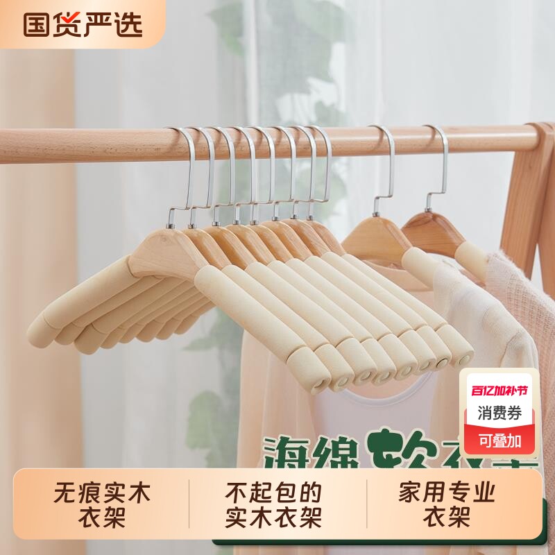 实木海绵防滑无痕家用挂衣衣架服装店专用衣服挂衣撑衣柜衣架木质