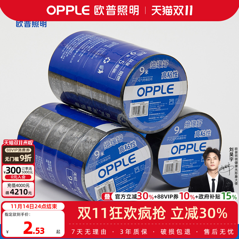 公牛插座旗舰电工胶带绝缘胶带电工黑胶带阻燃电工PVC胶布9米