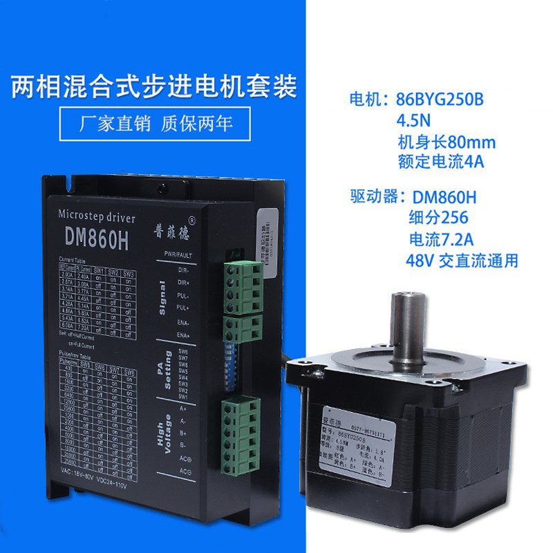 32位DSP 86步进电机套装 86BYG250B+驱动器DM860H 4.5N.m机长80mm