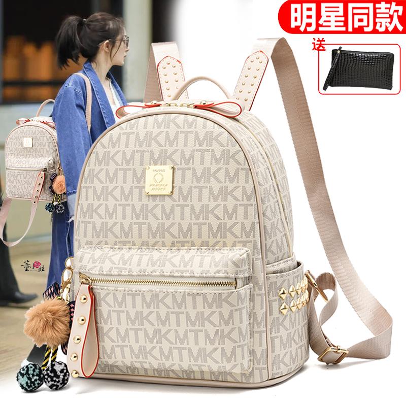 时尚铆钉双肩包女2021新款韩版百搭印花小背包女士休闲潮流旅行包