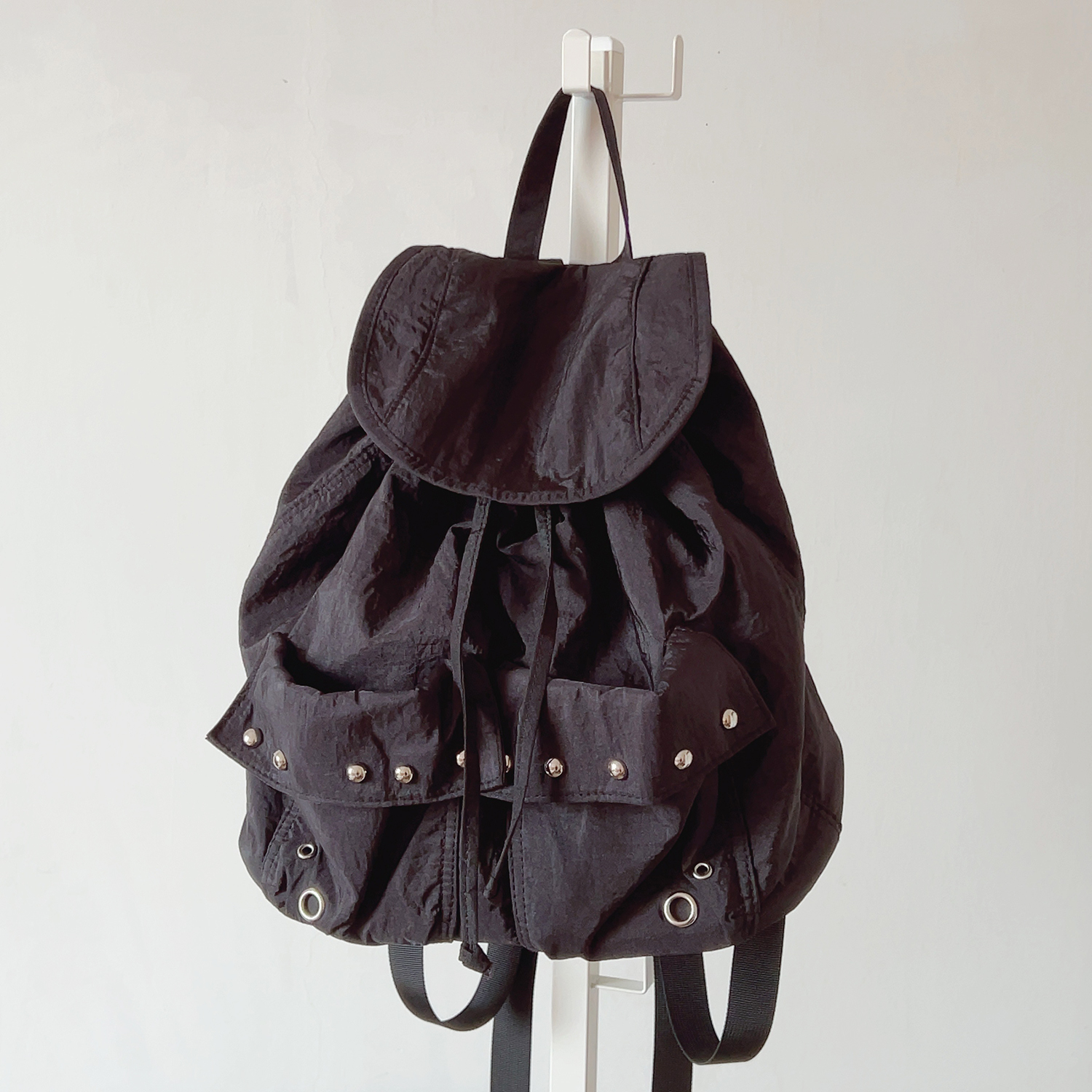 ins时髦铆钉双口袋双肩包时尚旅行小背包户外轻便尼龙包单肩包女