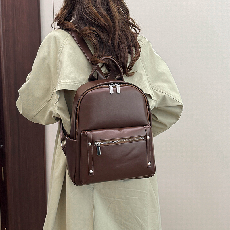 欧美风简约通勤双肩包女大容量百搭纯色小书包高级感铆钉旅行背包