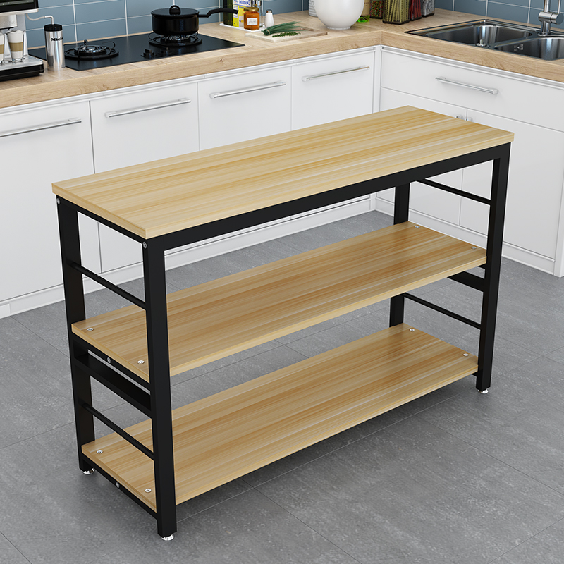厨房切菜桌置物架落地多层多功能微波炉置物桌家用长方形靠墙长桌