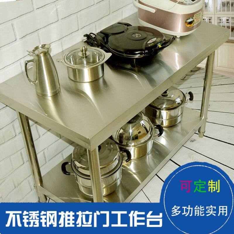 包邮不锈钢家用拉门工作台厨房桌子打荷操作台切菜商用台面案板柜