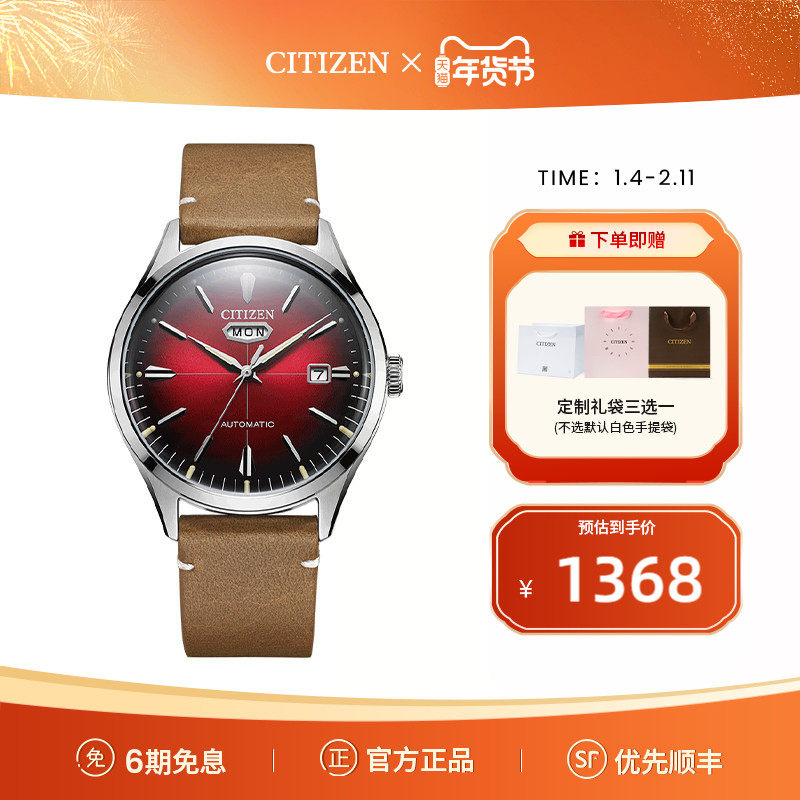 【商场同款】西铁城经典商务休闲机械透底皮带钢带男表NH9130