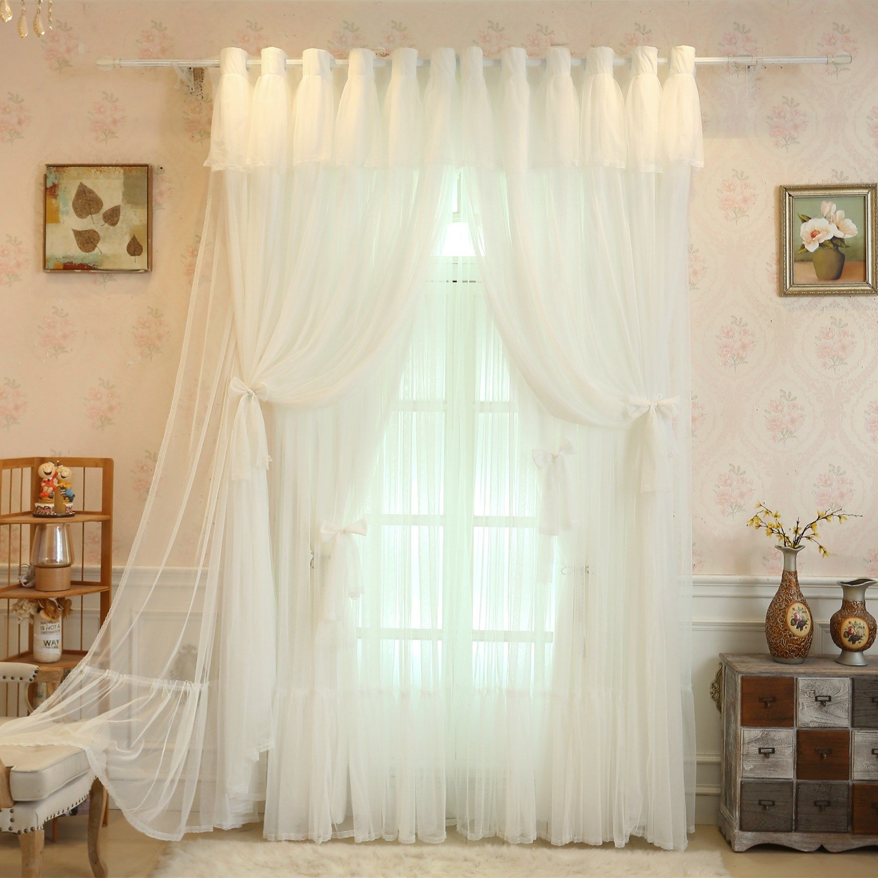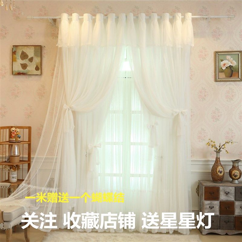 蕾丝窗帘北欧风公主飘窗客厅卧室落地窗梦幻网红遮光纯白窗纱时尚