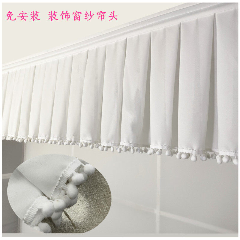 定制纯白窗纱帘头窗帘帘头窗幔魔术贴自粘遮挡窗幔客厅卧室短窗帘