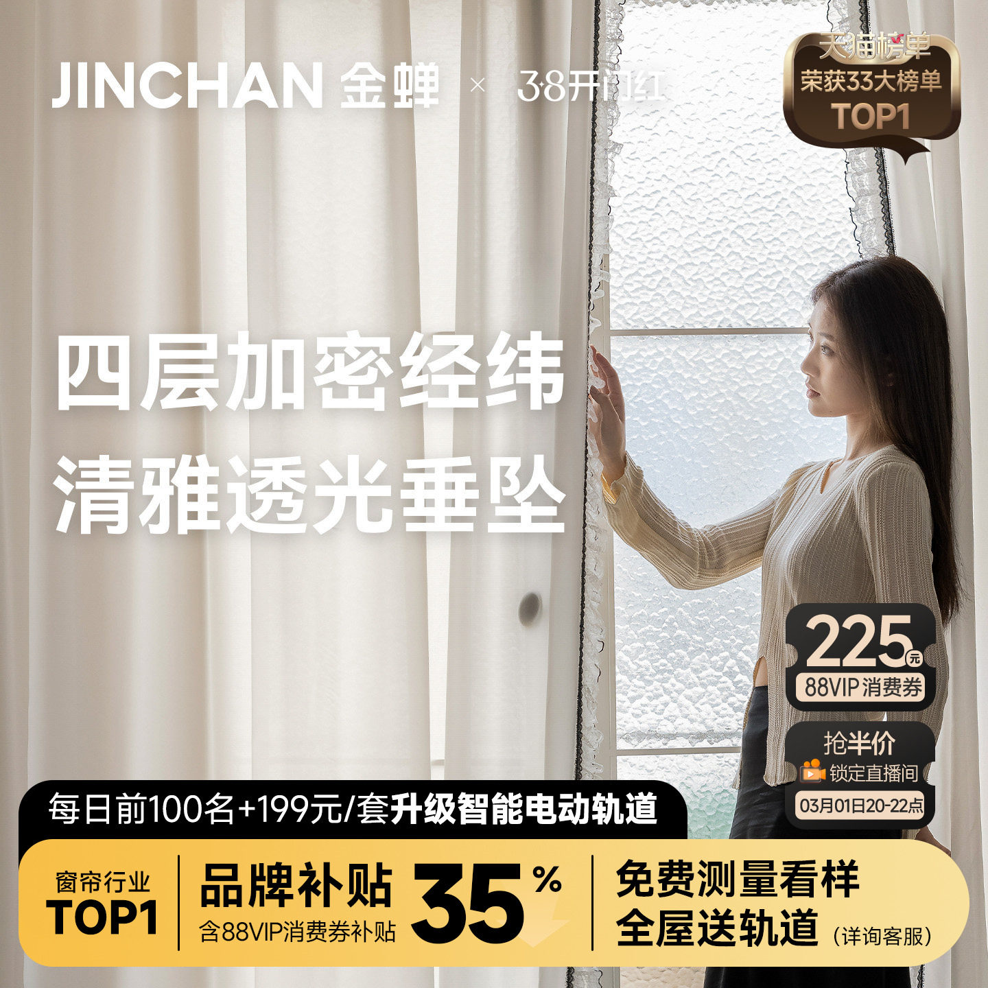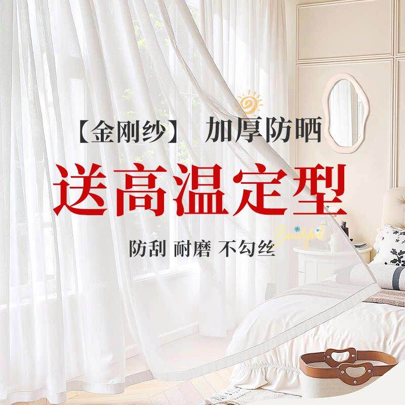 金蝉高端纱帘透光不透人窗帘2025新款客厅阳台白窗纱金刚纱梦雾纱