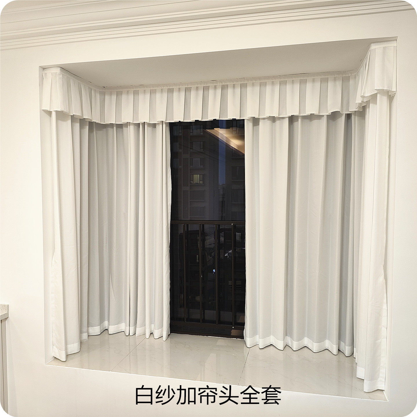 窗帘带帘头幻影纱窗帘头幔帘头客厅卧室飘窗纱帘透光不透人白窗纱