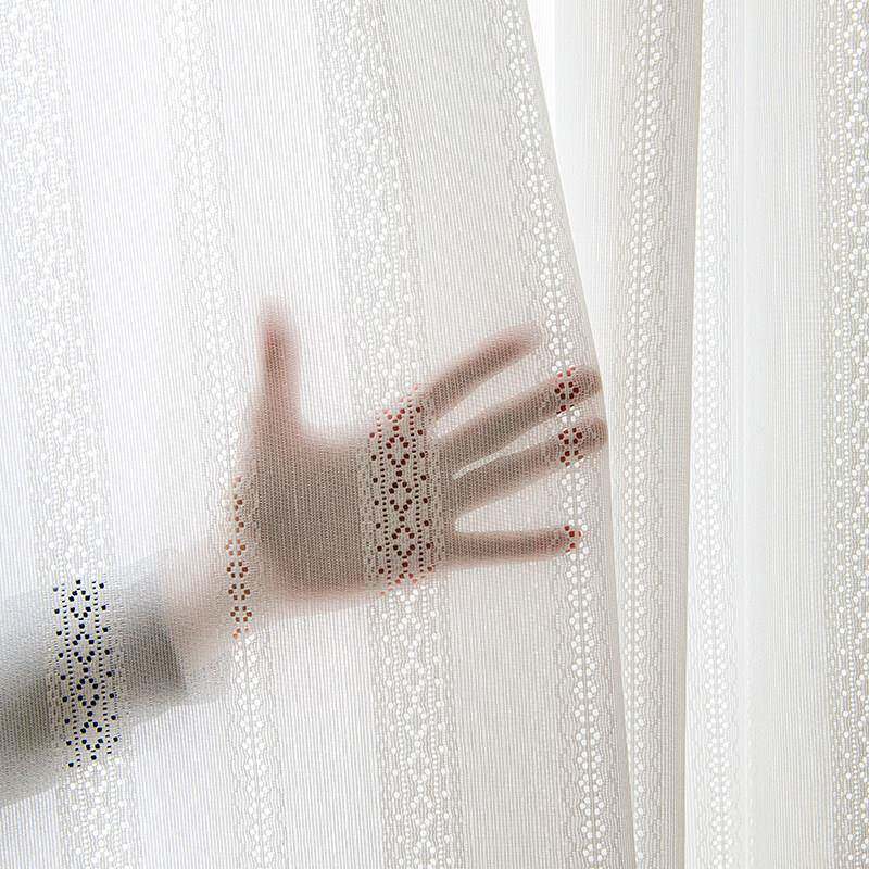 日式白纱 编织蕾丝镂空纱帘 纯白窗纱提花窗帘简约半遮光滤光隔断