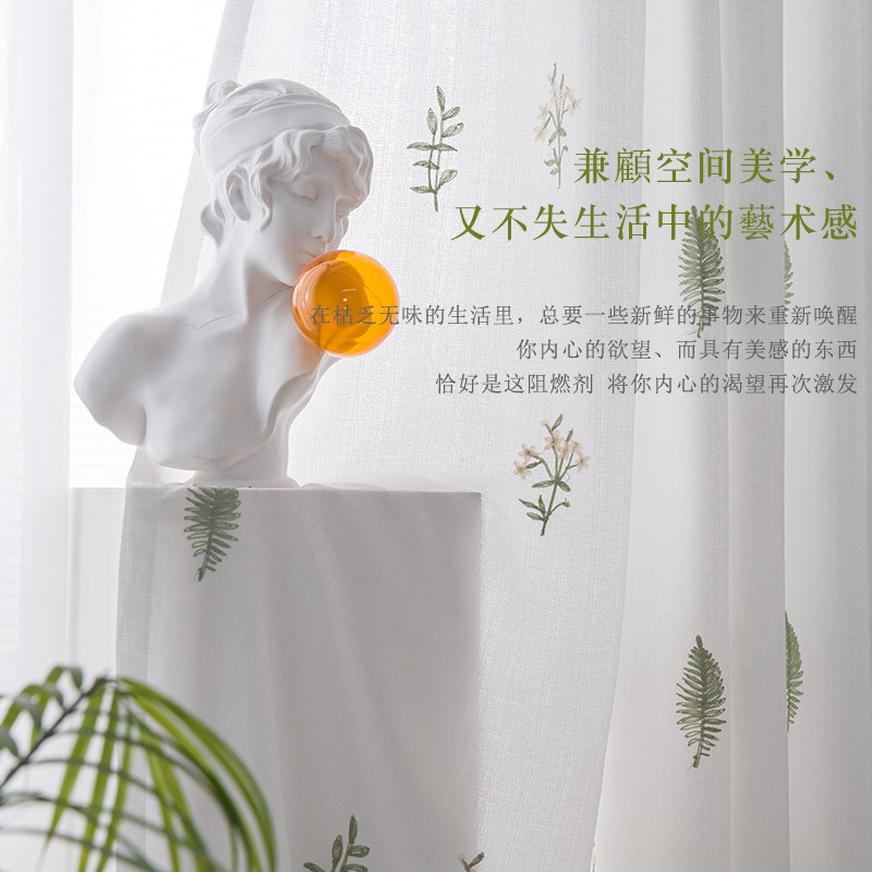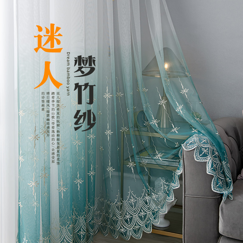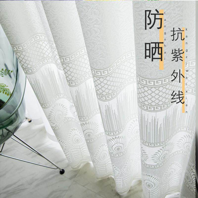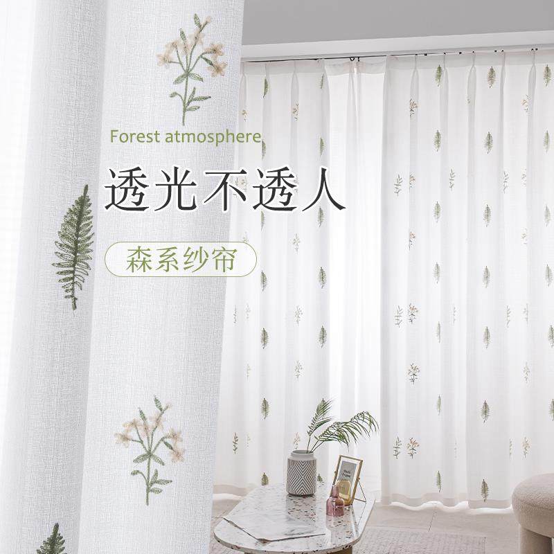 窗帘纱帘透光渐变北欧日式ins阳台卧室隔热防晒白窗纱防蚊绣花纱