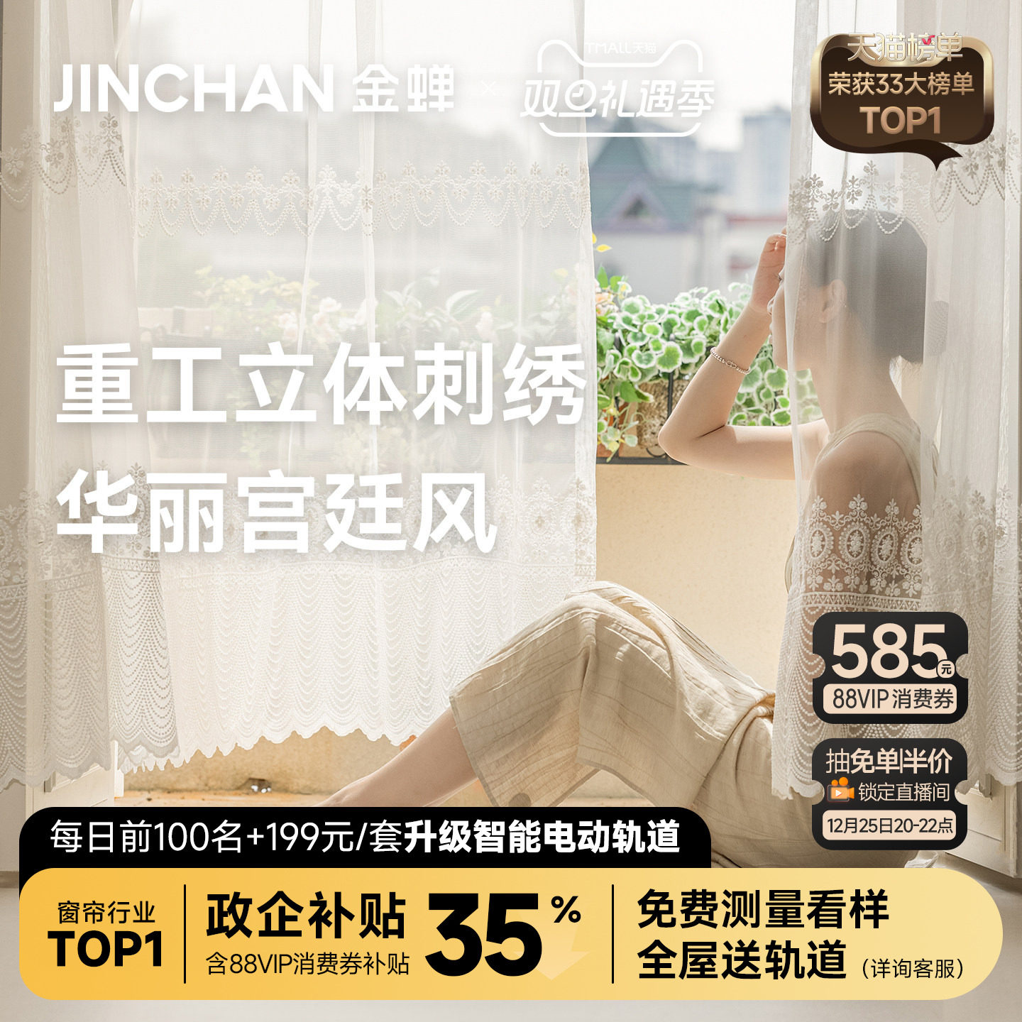 金蝉纱帘白窗纱2025新款窗帘纱客厅白纱立体刺绣透光透人天使之光