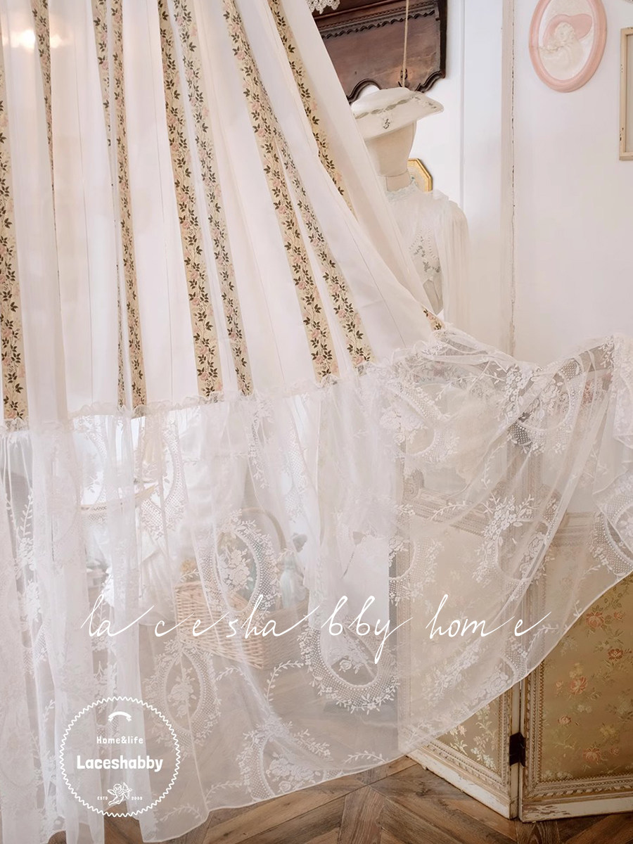 LACESHABBY新款法式浪漫复古玫瑰绣花蕾丝米白窗纱帘窗帘