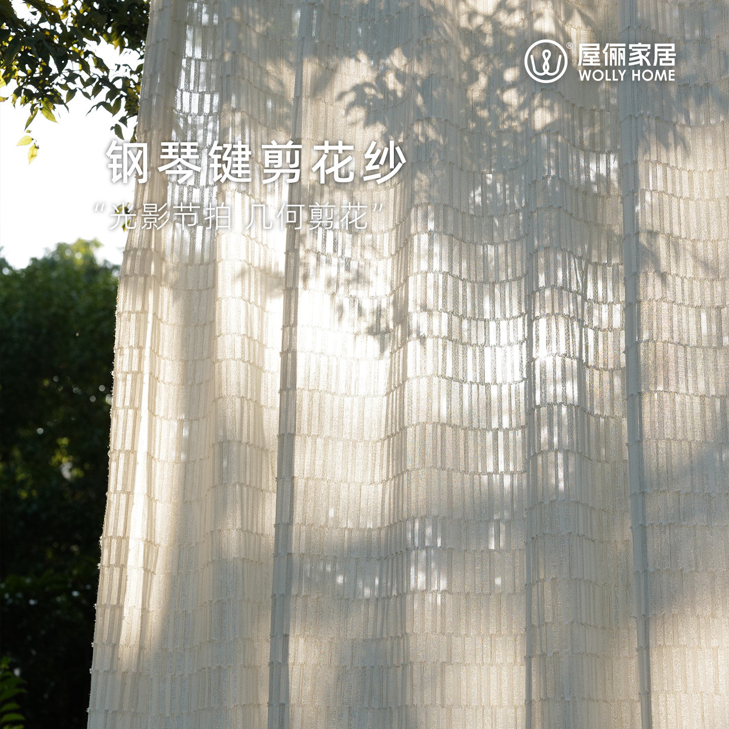 屋俪钢琴键剪花纱窗帘纱帘透光不透人遮阳客厅飘窗法式遮光白窗纱