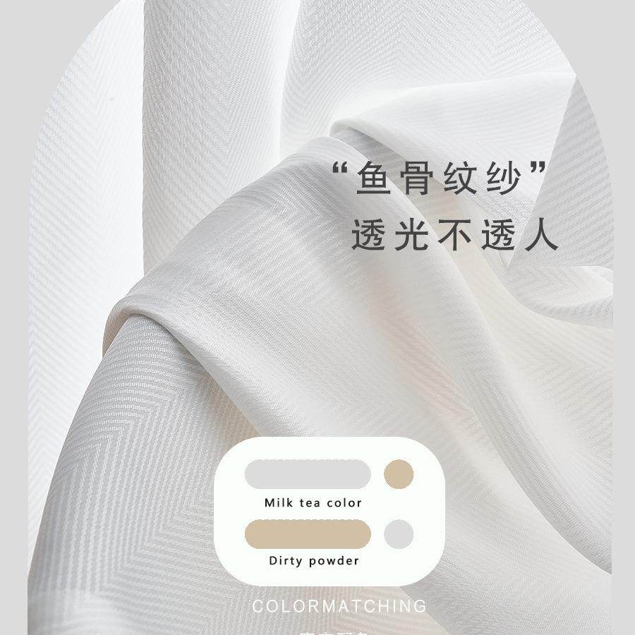 现代轻奢鱼骨纹透光不透人字形纯白窗纱纱帘阳台卧室客厅加厚窗帘