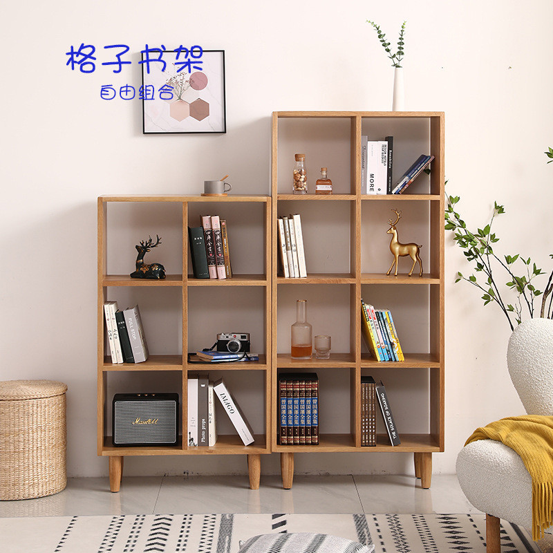 日式方格书架收纳落地儿童格子书柜白橡木实木樱桃木沙发后置物架