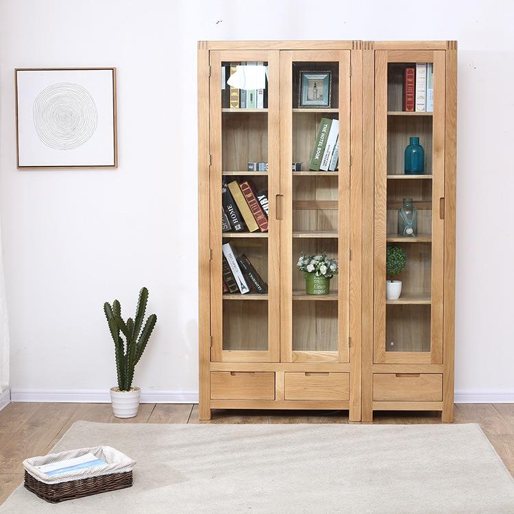 纯全实木书柜白橡木双门北欧现代带玻璃门书橱原木酒柜展示柜边柜