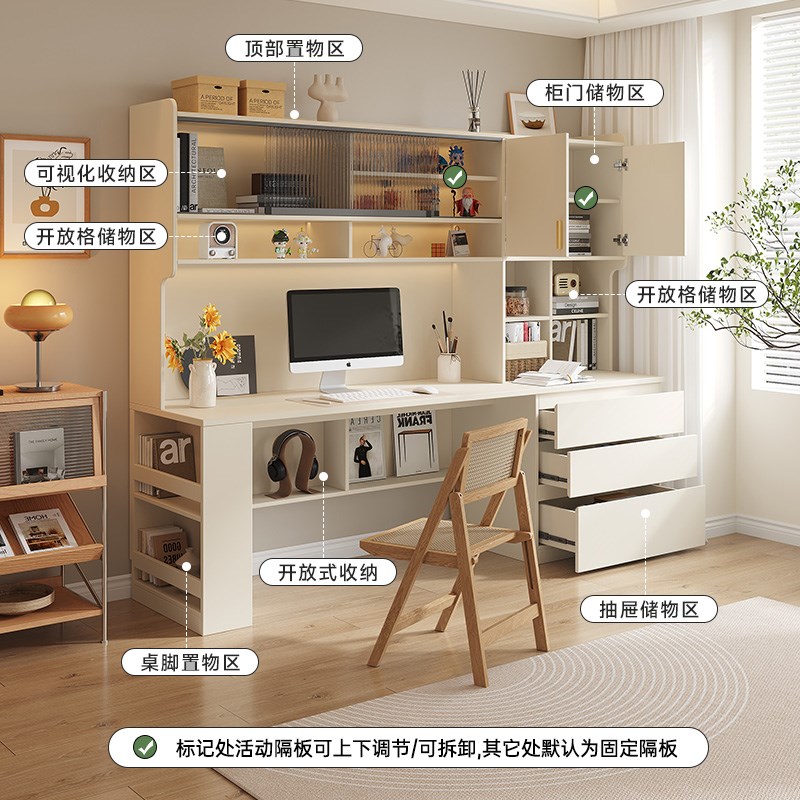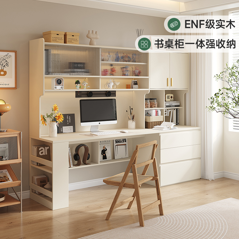 定制实木书柜书桌书架一体卧室家用靠墙橡木白色写字学习桌电脑桌