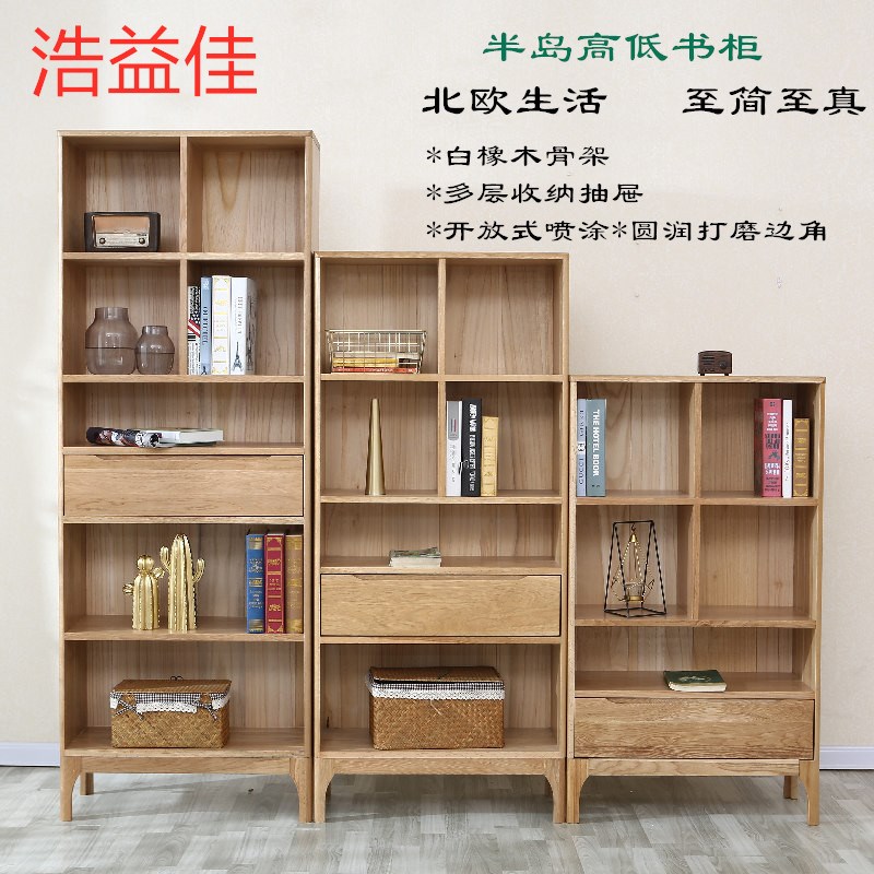 日式白橡木纯实木书柜书架书橱简约原木落地书架置物柜开放式组合