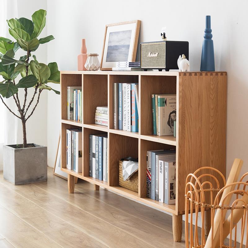 北欧实木书架日式客厅收纳格子柜白橡木定制置物架樱桃木落地书柜