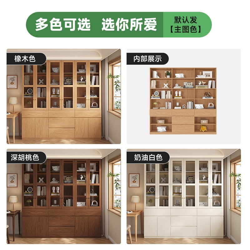 实木书柜书架带玻璃门书房置物架书橱展示收纳柜白橡木储物架定制