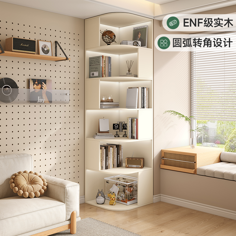 定制全实木书柜圆弧橡木到顶墙角落地置物书架转角储物柜客厅白色