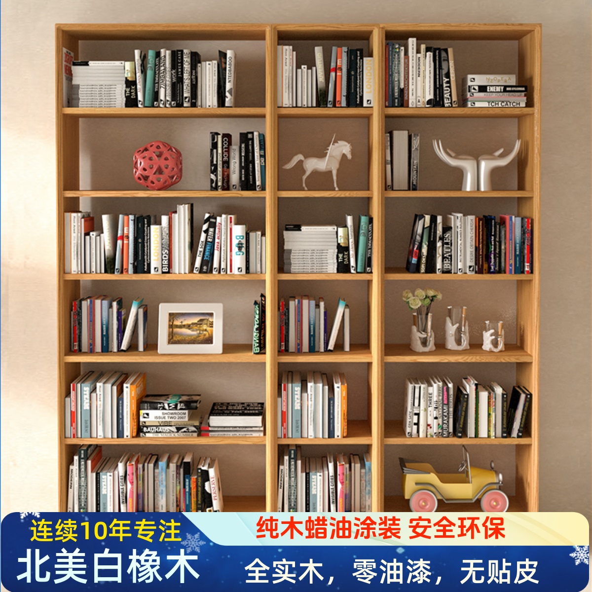 纯全实木书架白橡木满墙书柜简约整墙北欧日式置物架组合柜原木风