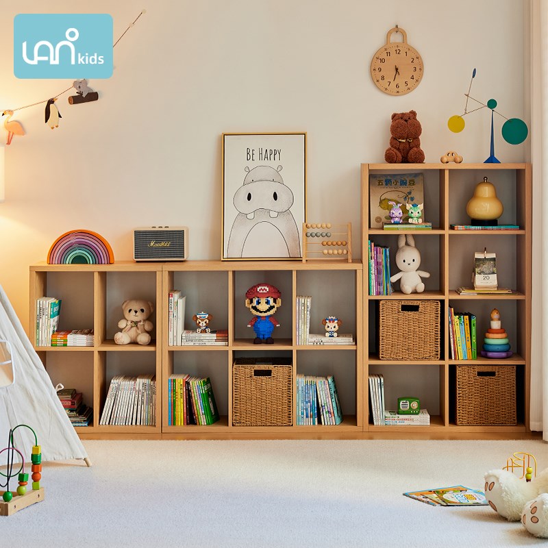 懒生活儿童书架落地格子柜家用白橡木色玩具架简易书柜矮柜置物架