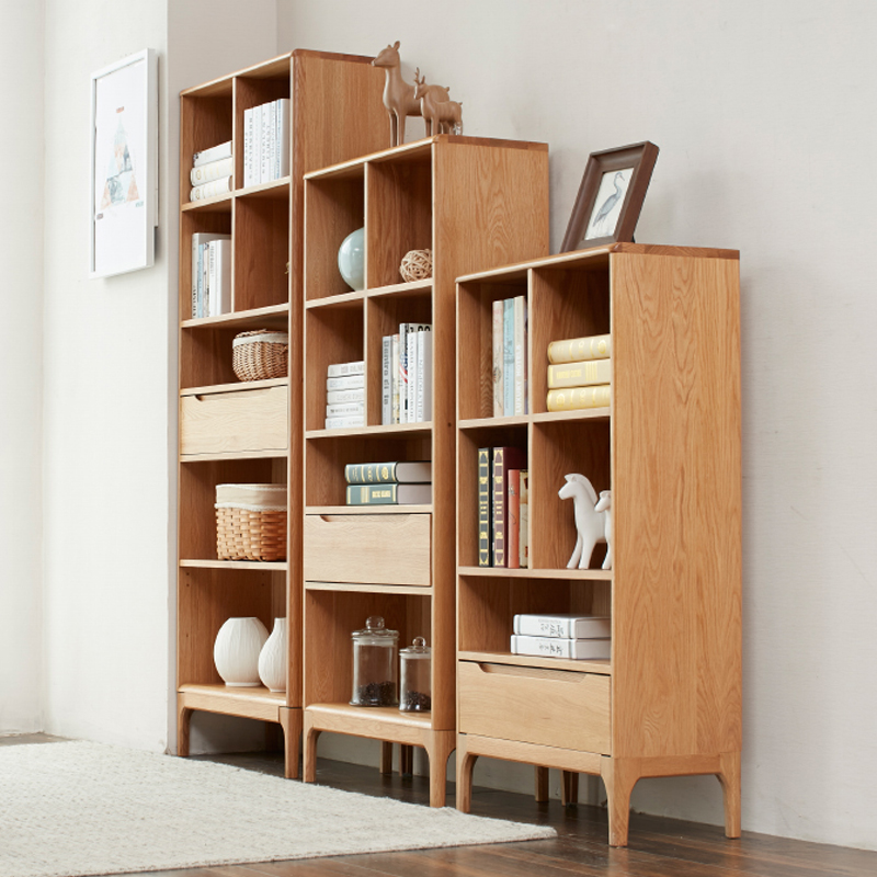 纯全实木书架白橡木储物架北欧简约原木色置物架高书柜展示柜书房