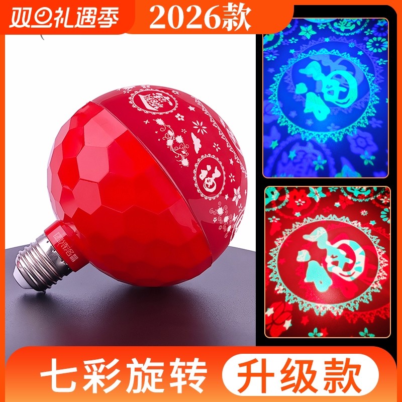 2026新款旋转七彩福字灯春节齐福彩灯大号新年喜庆发财过灯笼灯泡