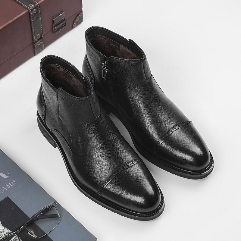 沙驰男鞋冬季高帮马丁皮靴男士加绒三接头商务皮鞋真皮二棉鞋短靴