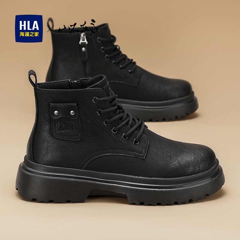 HLA/海澜之家男鞋高帮冬季潮流皮靴户外马丁靴英伦风加绒工装男靴