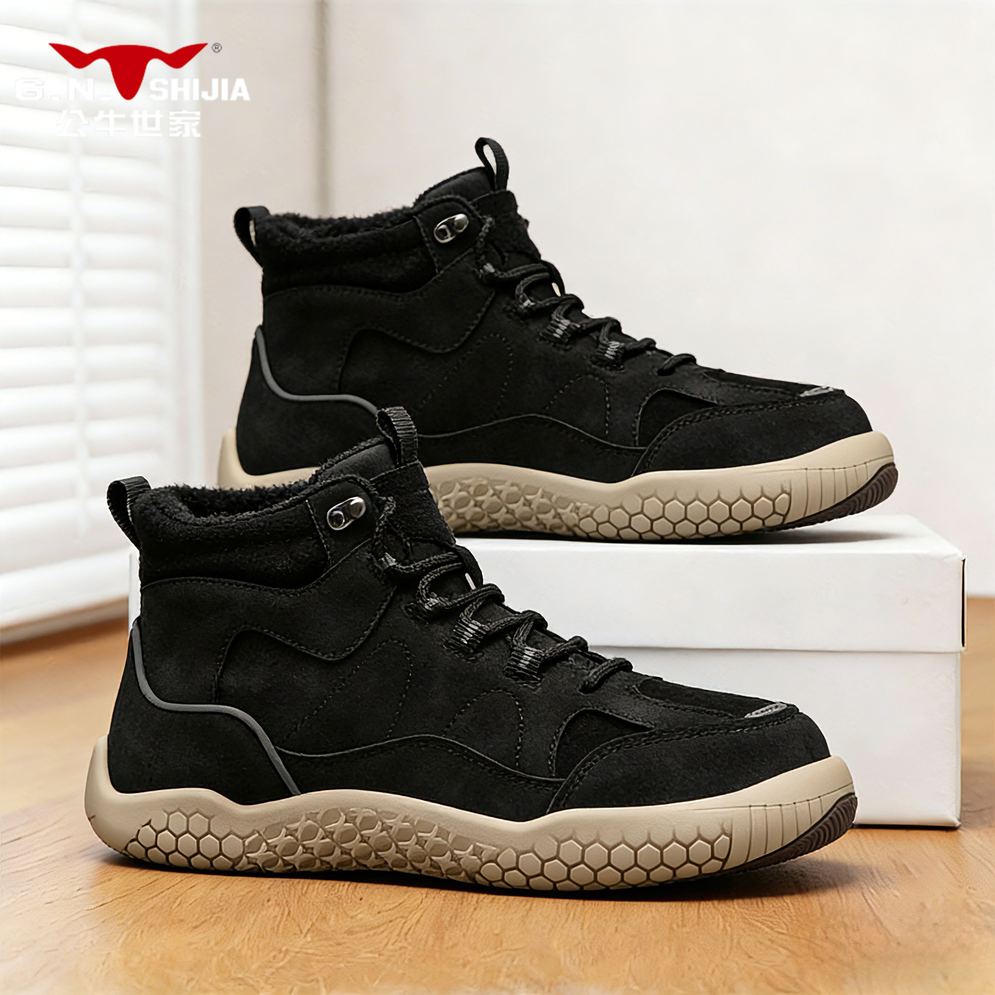 公牛世家高帮鞋男冬季厚底马丁皮靴男士户外登山运动英伦风工装靴