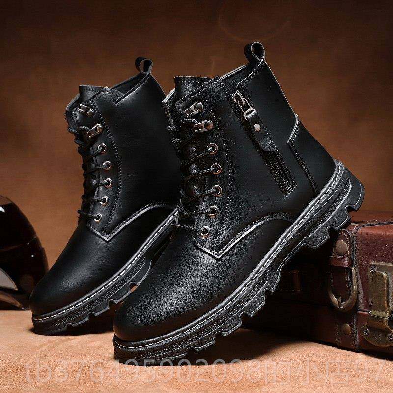 2025年新款马丁靴男款秋冬高帮英伦风黑色工装机车皮靴加绒保暖皮