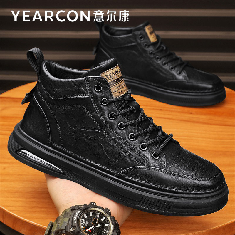 意尔康高帮板鞋男2026新款秋冬季爆款工装马丁皮靴男士登山大黄靴